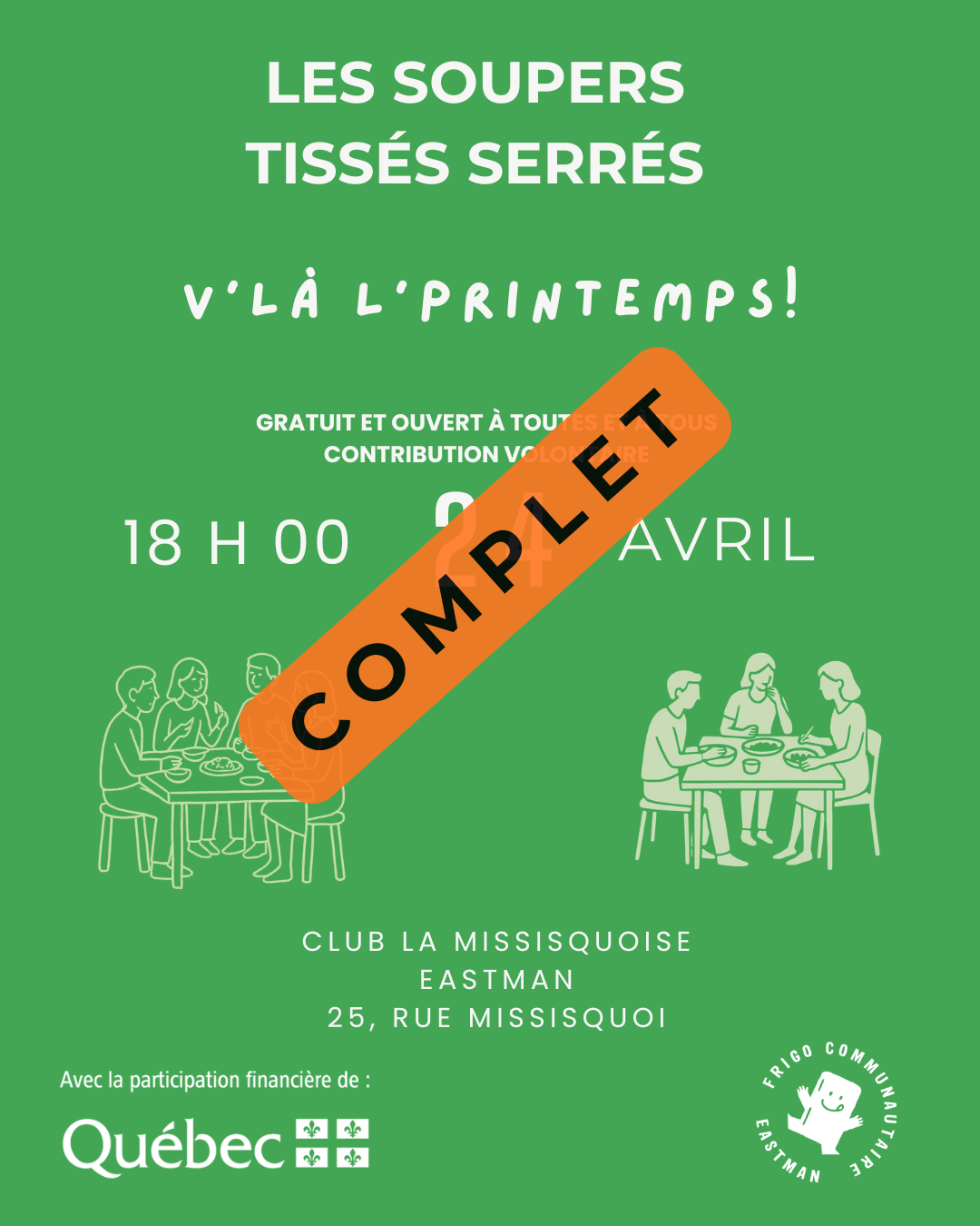 Vous souhaitez être informé de l’ouverture des inscriptions aux ateliers de cuisine pour les 15-30 ans? Suivez-nous sur Instagram.